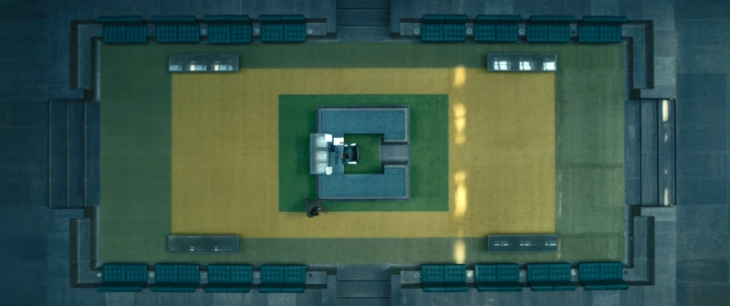 Марк, теперь руководитель отдела, должен вести обучение новой сотрудницы, которая является той самой Хелли. В этой сцене отчетливо видно, как корпорация Lumon использует людей в своих целях, манипулируя их сознанием и подавляя их личности.